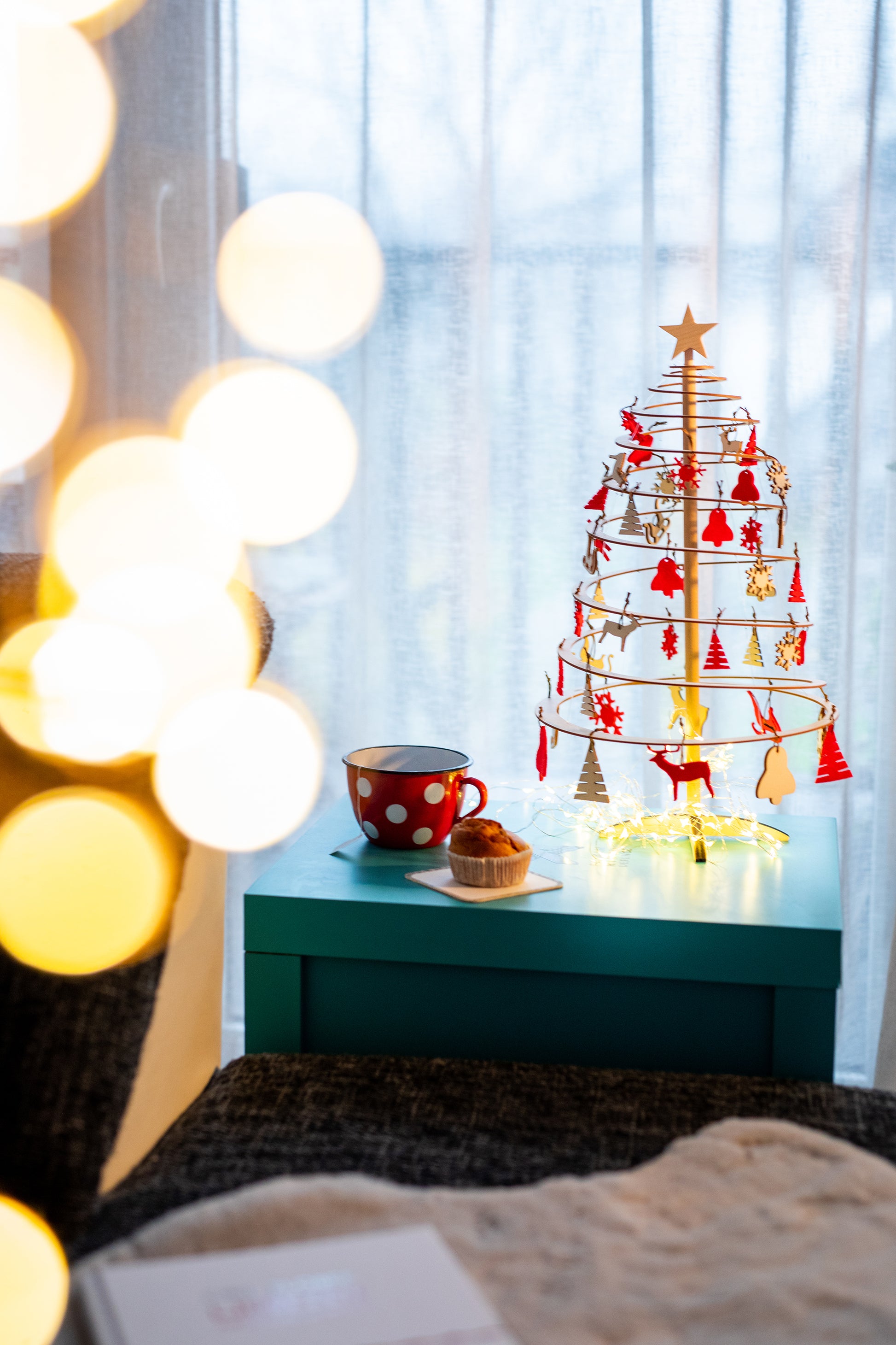 Spira Mini es una decoración de mesa ideal para el hogar o la oficina. Una pieza de diseño único que crea un ambiente festivo al instante. Árbol Spira Mini con estrella en la punta.