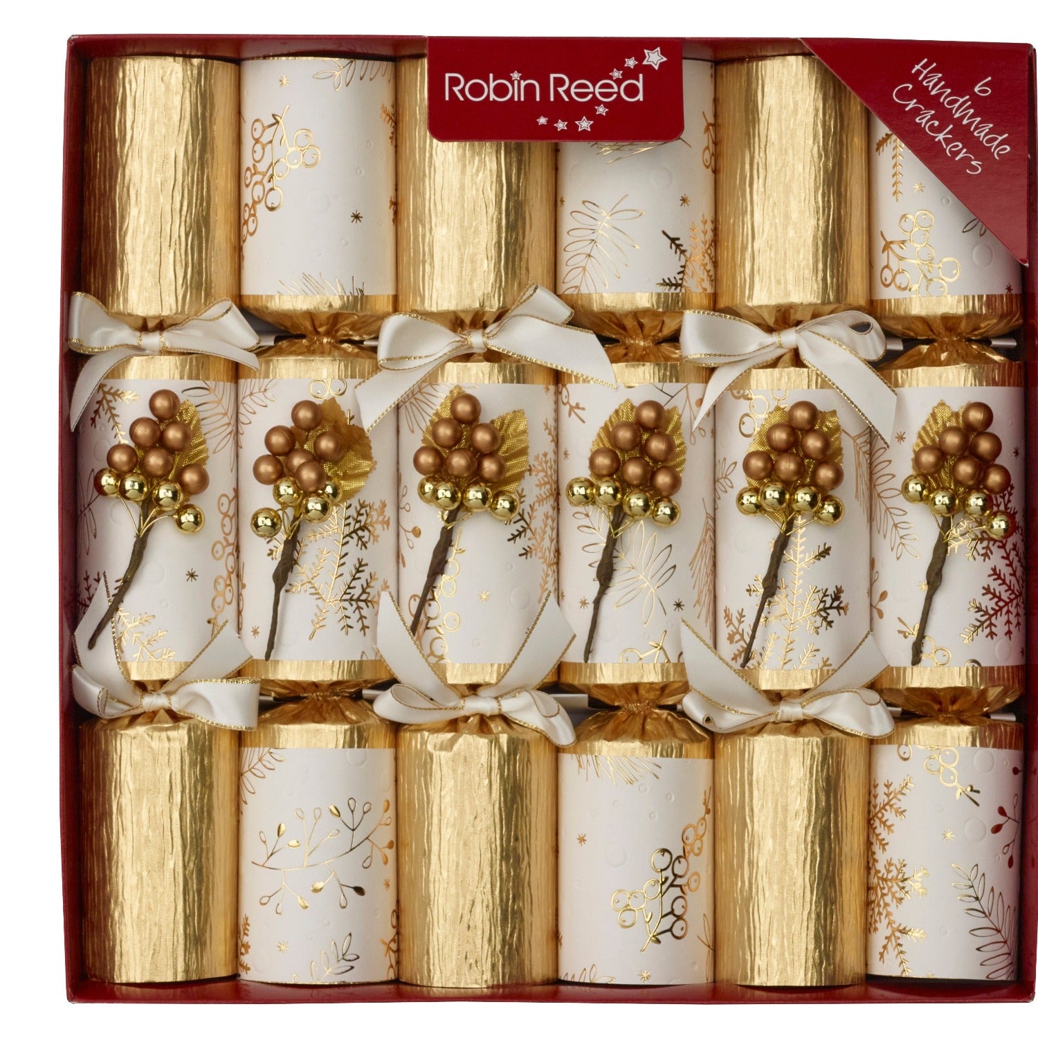 Un diseño elegante con el dorado como color principal. Estos petardos navideños son el toque final perfecto para cualquier mesa navideña. Un secreto aguarda dentro de cada uno. Ábrelos y encuentra un pequeño y elegante regalo del set de regalo Mayfair de Robin Reed.