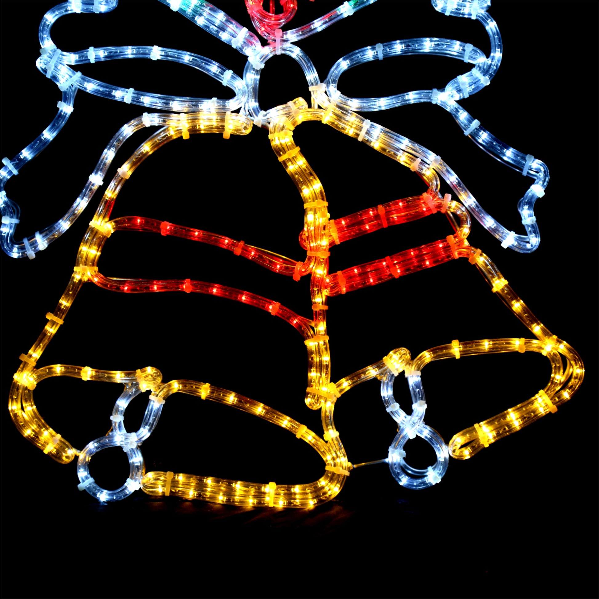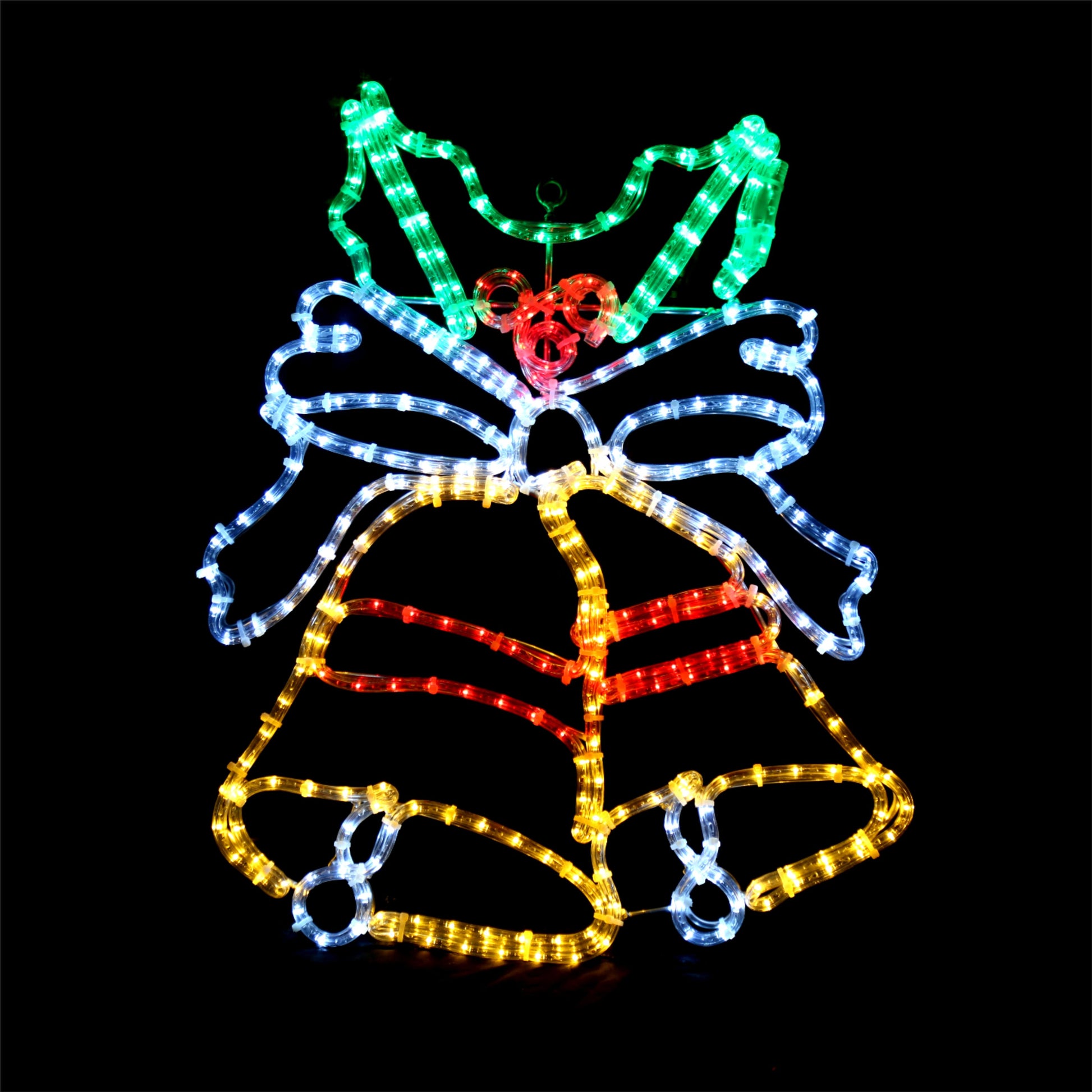 A colorful bell with two bells. A classic Christmas light design that complements your display perfectly. The Christmas light can be used outdoors. The LED figure is 55x65 and consists of LED ropes tied to an aluminum framework. Outdoor Christmas lighting is popular and is a sure winner for creating a Christmas atmosphere in your neighborhood.