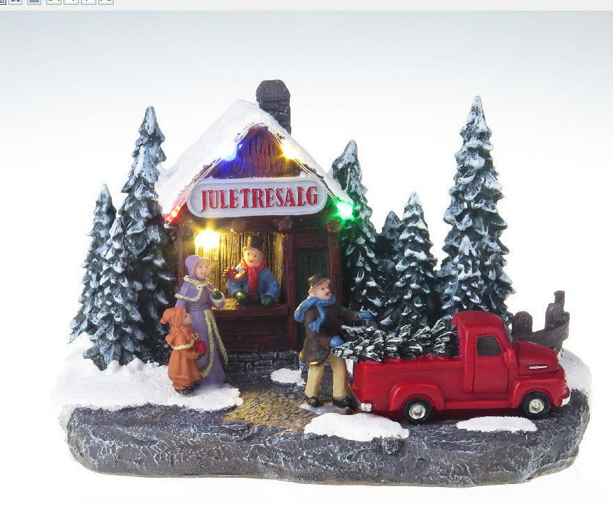 Operated by batteries (batteries not included) for your convenience, this LED-lit Christmas Tree Stall is easy to set up and enjoy anywhere in your Christmas Village. Simply place it in a prominent spot and let the holiday magic unfold.