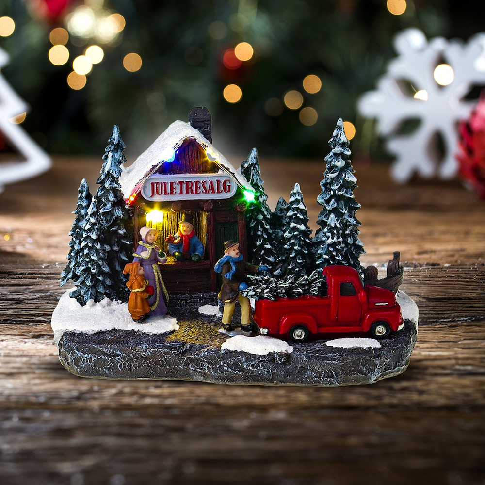 Elevate the charm and wonder of your Christmas Village with our LED-Lit Christmas Tree Stall. Let the dazzling lights and festive atmosphere transport you to a world of joy and celebration. Order now and infuse your Christmas Village with the radiant beauty it deserves.