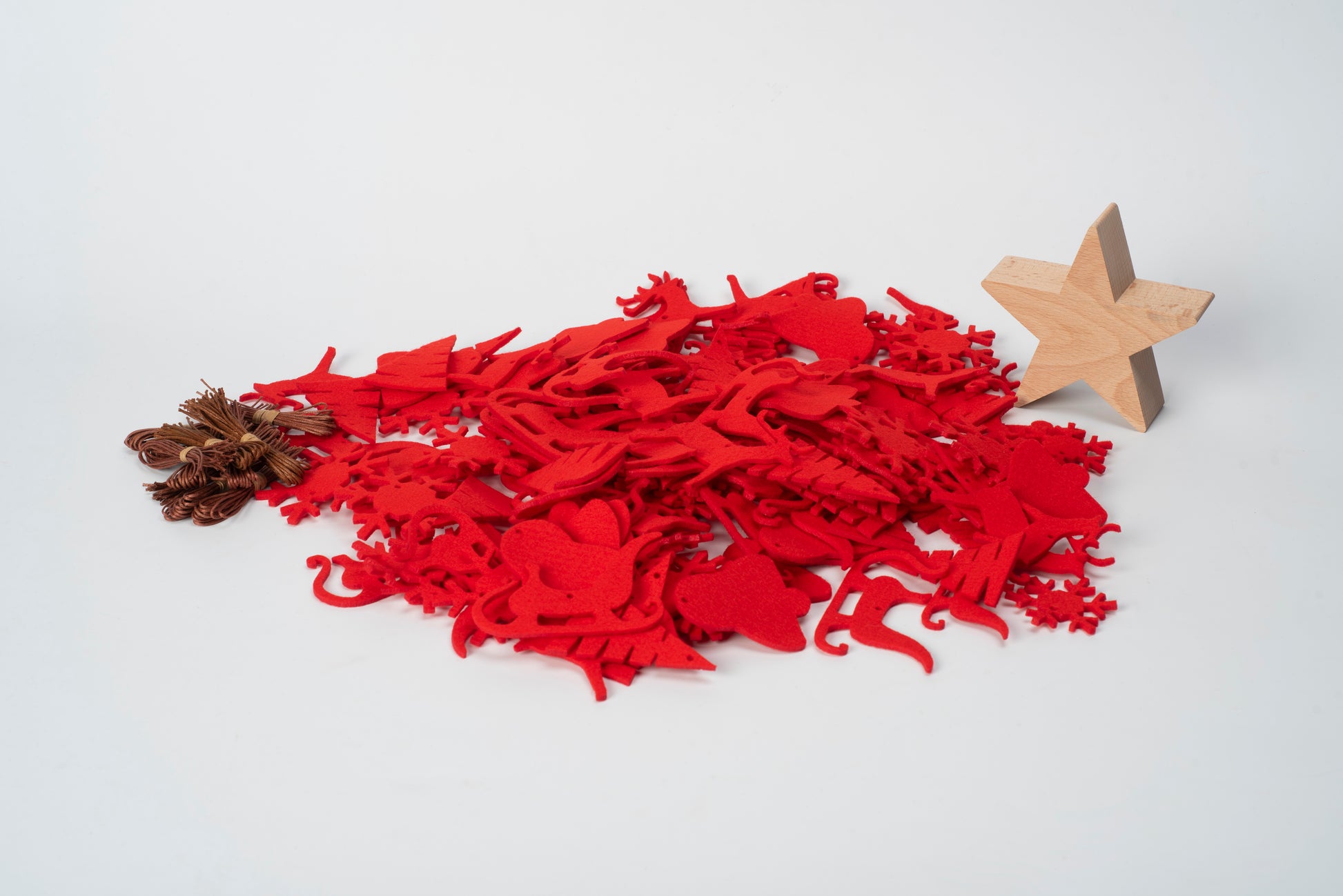 The set contains 139 of felt ornaments and a wooden star tree-topper. Hanging cords are included. Cute decorations will create the perfect festive atmosphere at home. All that’s missing is Christmas dinner and the people who mean the most to you.
