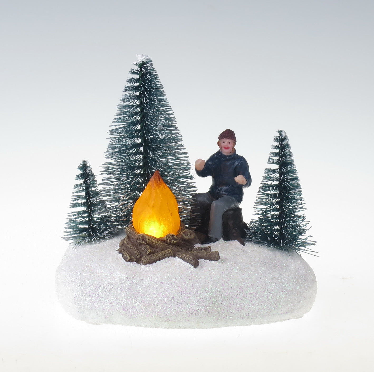 This item gives life to your Christmas Village. A bonfire lights up the evening darkness and the man next to it gets to enjoy a few moments of rest and warmth.