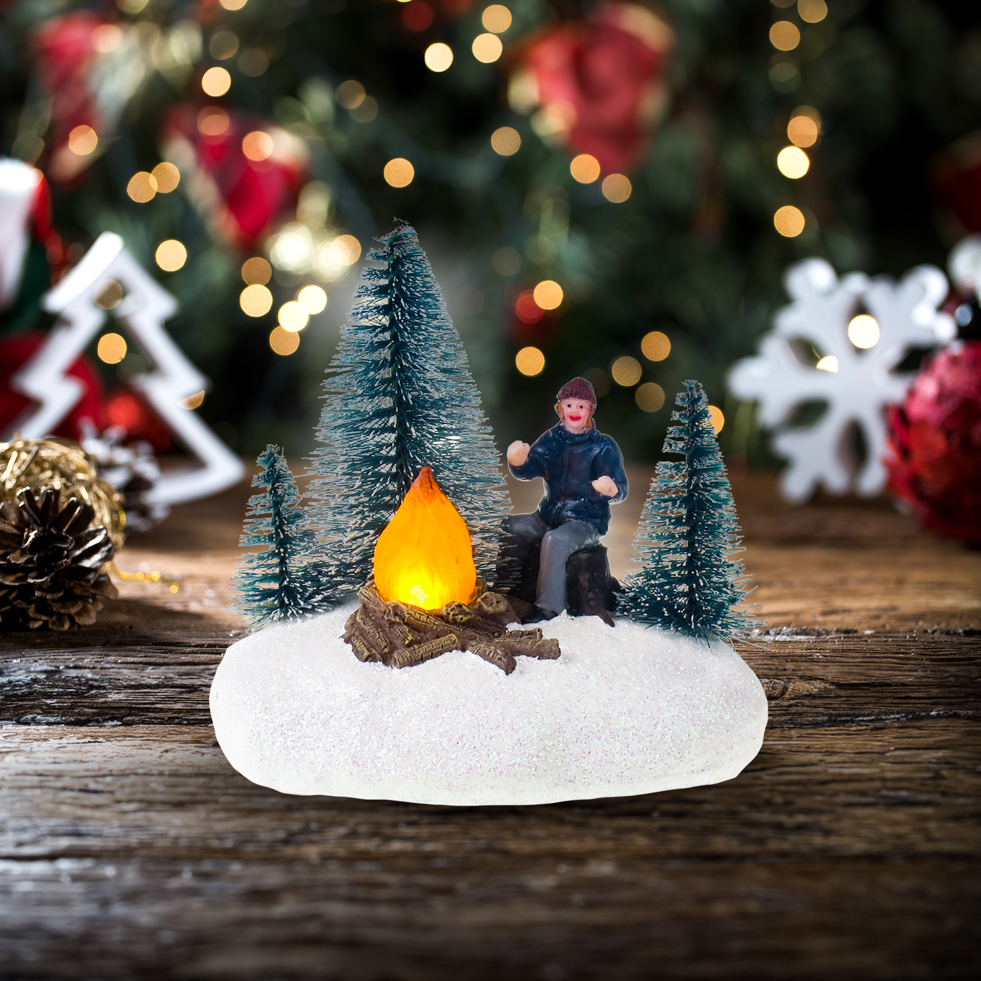 Experience the warmth and coziness of the holiday season with our captivating Christmas Village Bonfire decoration. This charming scene features a delightful man sitting by the bonfire, radiating a comforting glow that brings an inviting ambiance to your Christmas Village. With a timer function, the bonfire automatically turns on and off, adding an element of realism to your festive display.