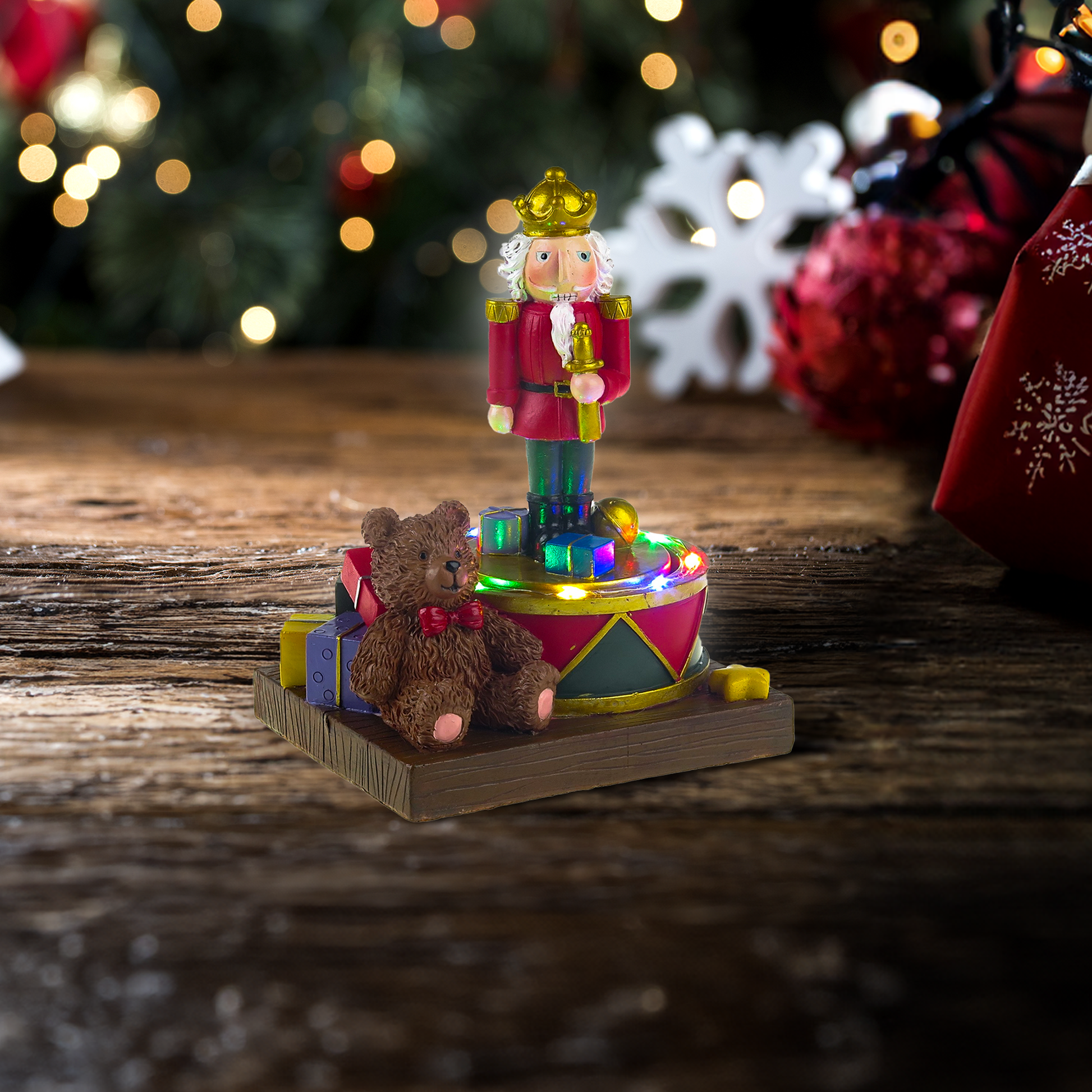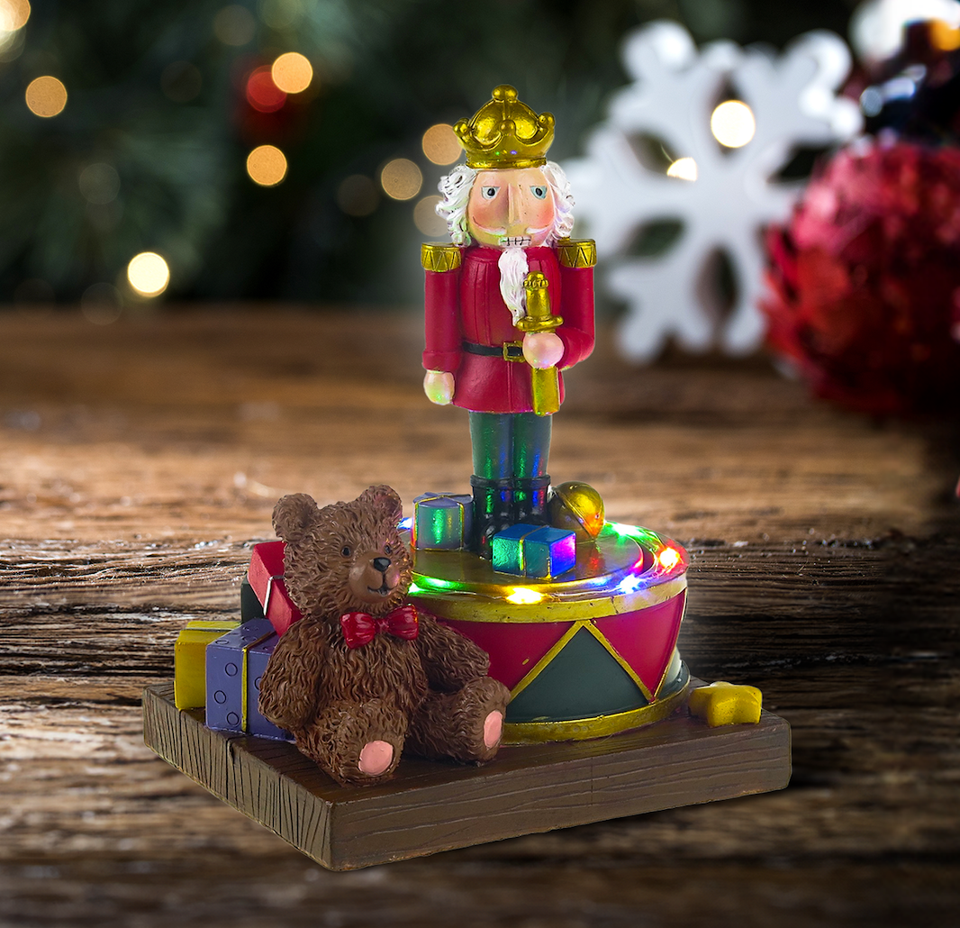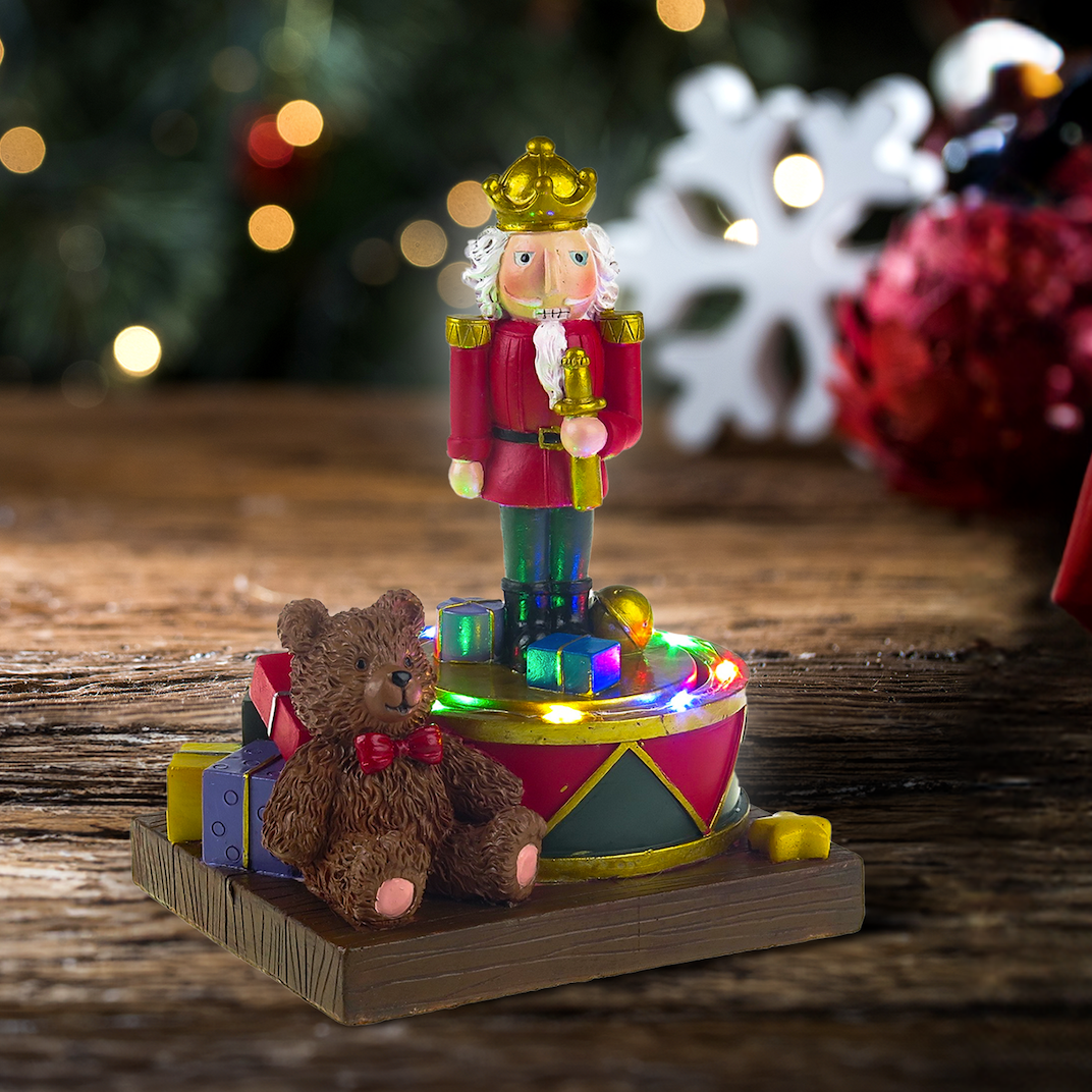 Watch in awe as the Nutcracker Soldier gracefully rotates, bringing life and movement to your holiday decor. With its commanding presence and LED-lit brilliance, it becomes a focal point of admiration, spreading joy throughout your Christmas Village.